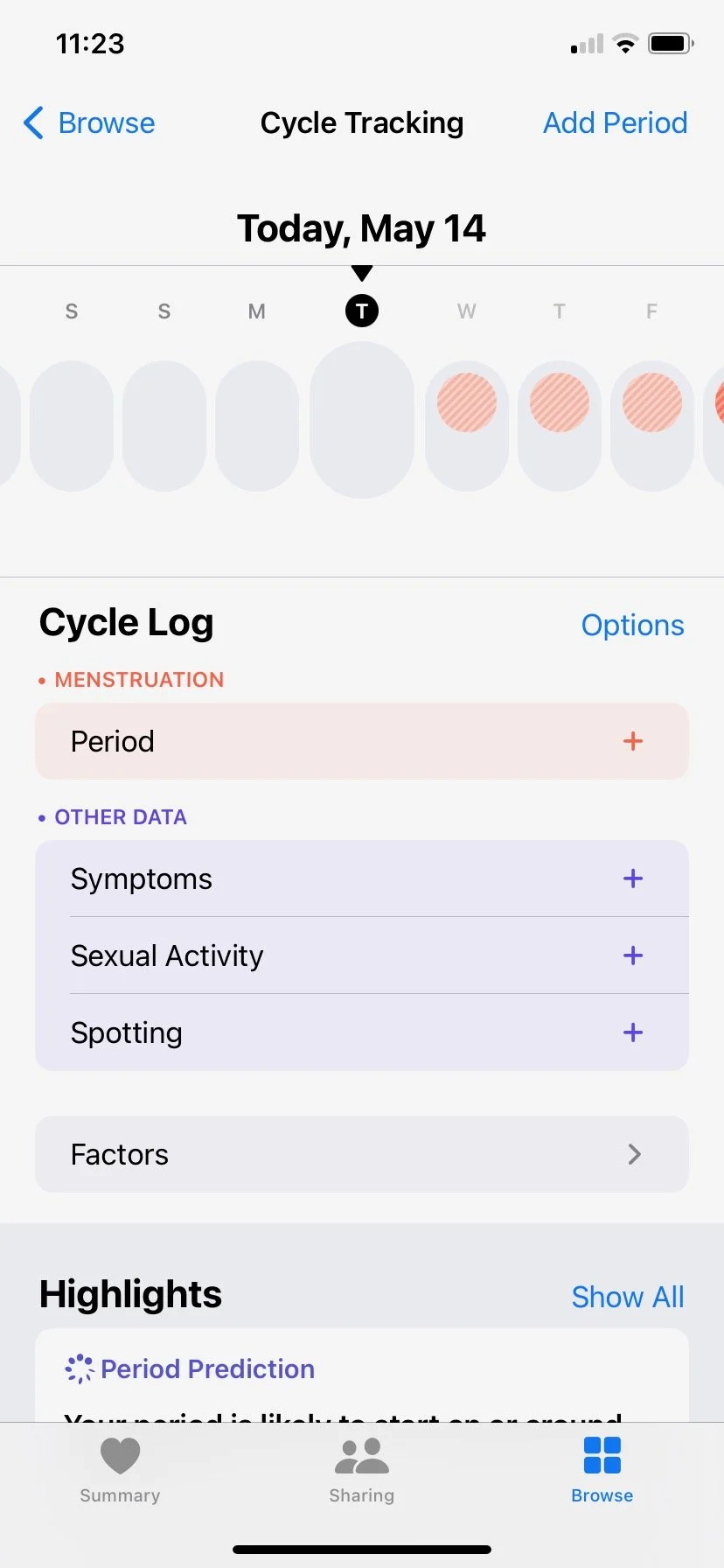 Available through the iPhone Health app that's already built into your iPhone, Cycle Tracking gives you the ability to log info related to your cycle, including flow level, symptoms like cramps and mood changes, and basal body temp if you’re into tracking that.